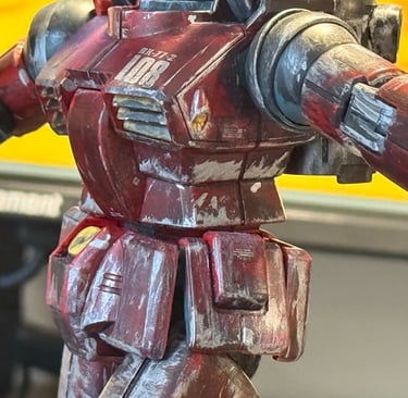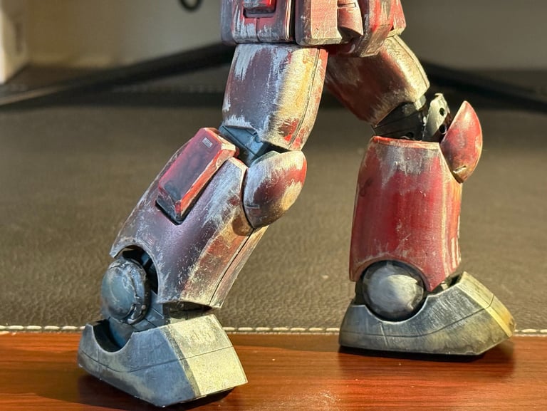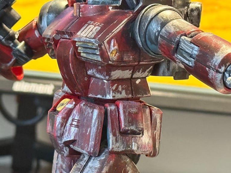 Funnily enough, The most weathered and damaged part of the model is near the 108 on the lower right leg, where I pulled out all of the stops on the washes