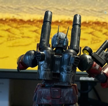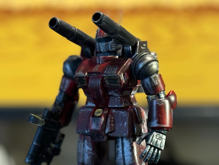 The attentive of you will notice the number 108 plastered all over the model. for this model, I wanted to take a bit of inspiration from the original gundam, and as such chose kai shiden's model.
