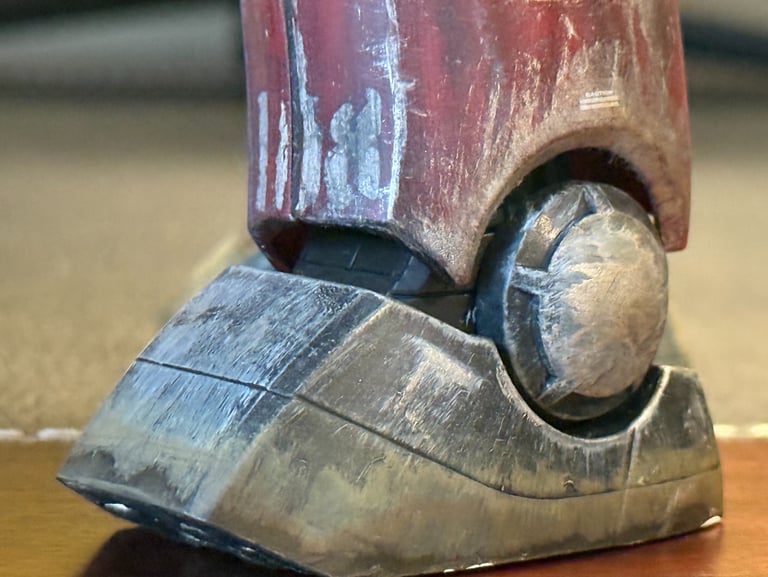 I think I did the most layering on the feet. Here, I started with a base coating of grey, and then drybrushed white all over to give texture and scratches. I then used a blackwash over the feet, before then applying coats of mud to the feet, starting with a light sand and ending with a dark brown. This was followed with some scratches via aluminum enamels, which sealed the look. I think it worked out well!